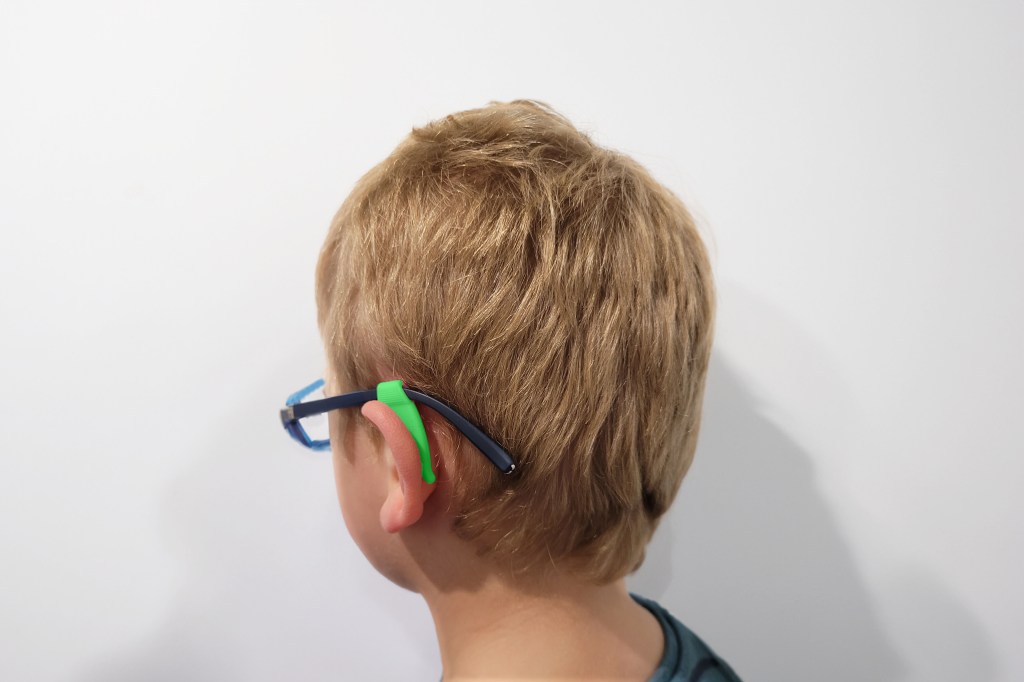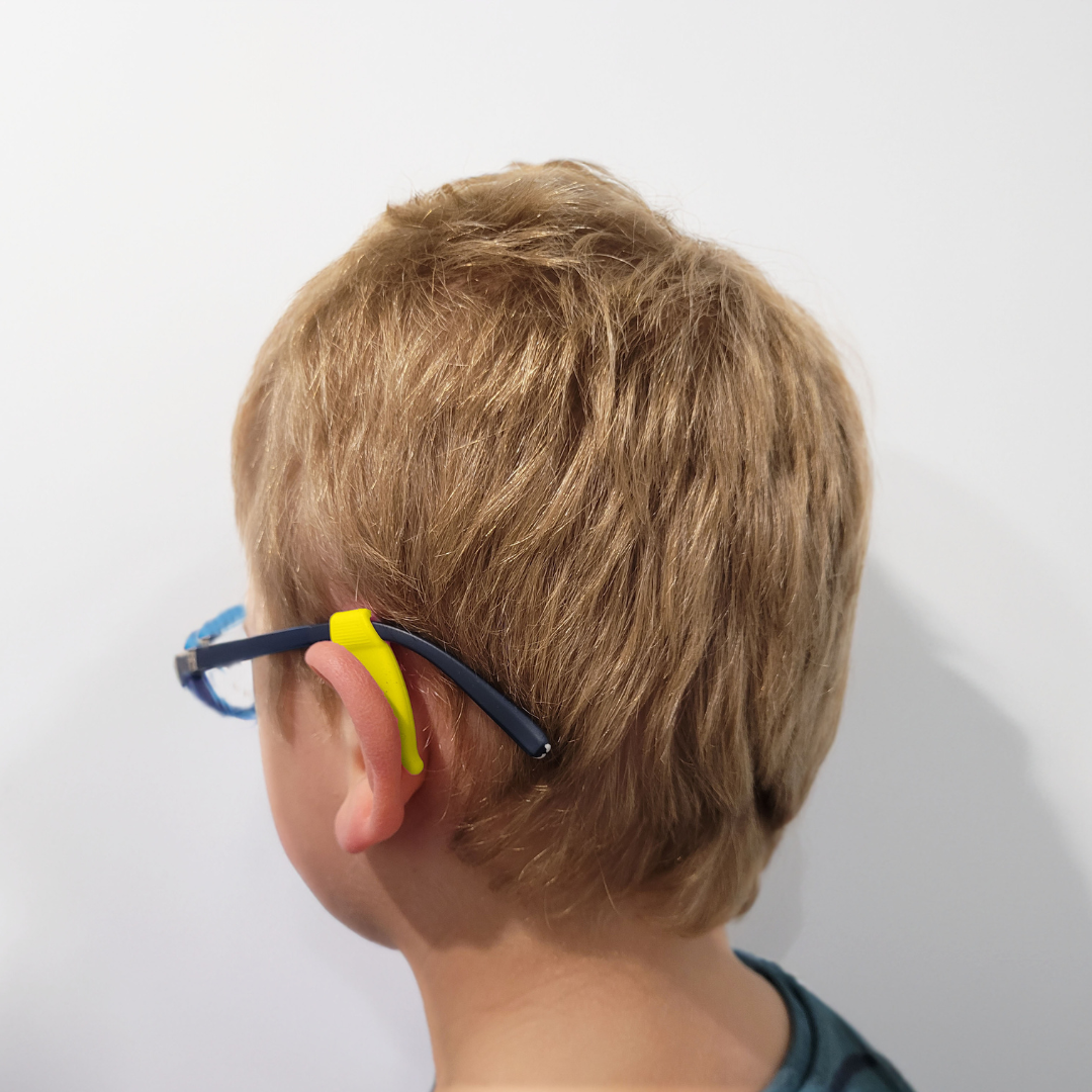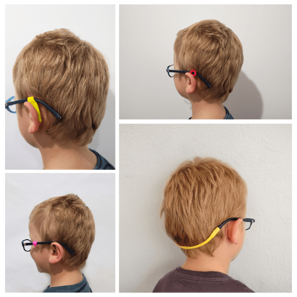 These Ear Grippers are AMAZING to help with all of these issues. The ear grippers slip on each of the arms and sit just behind the ear to stop the glasses slipping. They come in traditional shapes that mimic your ear, and more discreet shapes for older kids and adults.